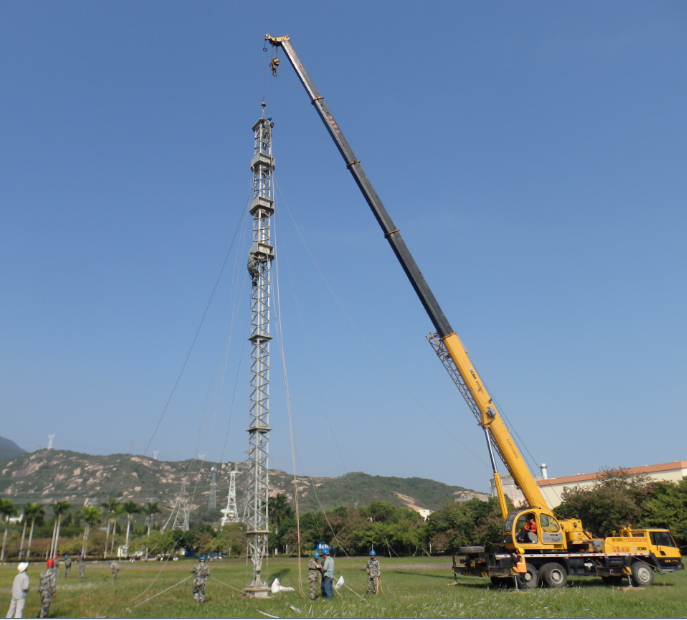 110KV半逸甲乙線N57直線塔,因塔附件道路施工,造成地形變化,基礎(chǔ)嚴(yán)重損壞(有附圖),鐵塔有1米傾斜。N57塔嚴(yán)重影響中山火炬開發(fā)區(qū)生產(chǎn)、生活及交通安全(距離路邊15米)。我公司接到任務(wù)后,火速調(diào)配所有ERS搶險設(shè)備及搶險人員,從剛剛順利完成任務(wù)的湛江(臺風(fēng)“彩虹”影響地)連夜趕到現(xiàn)場(中山),兩地相距600公里。到現(xiàn)場后充分發(fā)揮我公司團結(jié)、和諧的實力僅用兩天時間順利完成黨交給我們的任務(wù)(勘察、設(shè)計、材料調(diào)配、組塔、放緊線)。